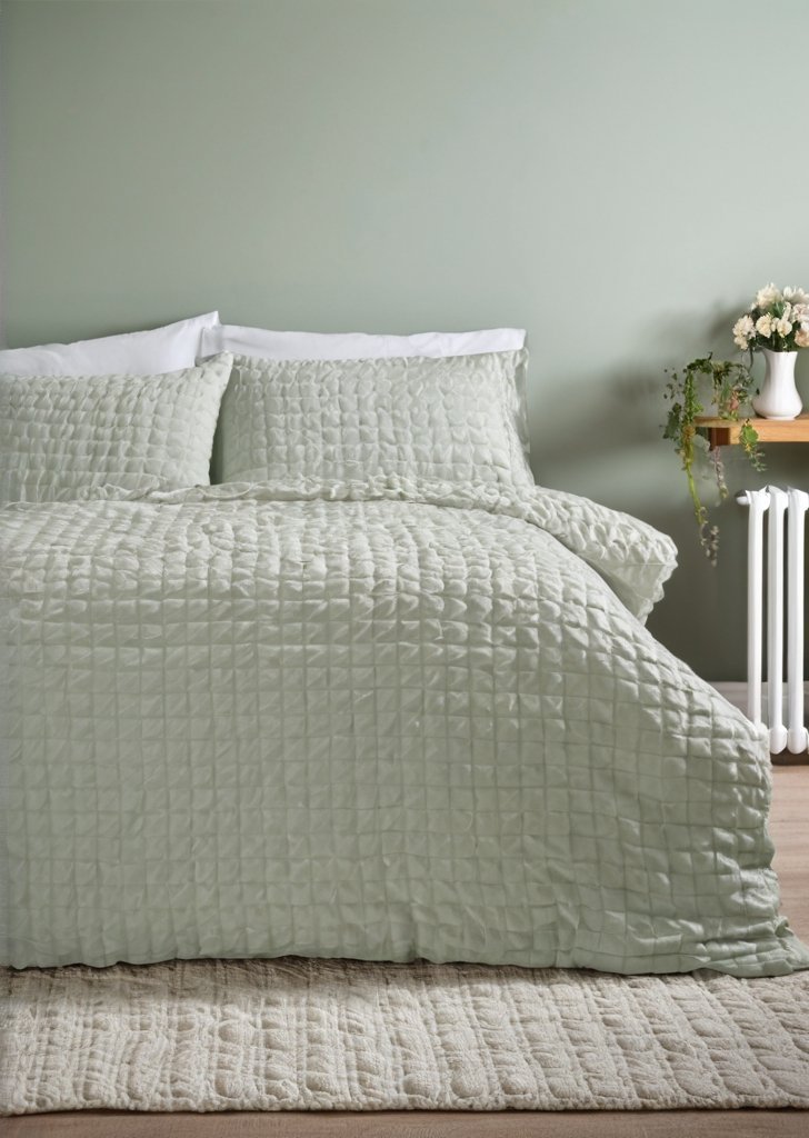 Zestaw pościeli Green to elegancka i oddychająca opcja pościeli, która łączy w sobie styl i wygodą. Ten komplet pościeli, wykonany z teksturowanej tkaniny typu , wnosi do sypialni odświeżający, zrelaksowany wygląd, zapewniając jednocześnie miąkki i przytulny sen. zielony kolor dodaje naturalnej, spokojnej atmosfery, idealnej do stworzenia uspokajającej i zachącającej atmosfery.