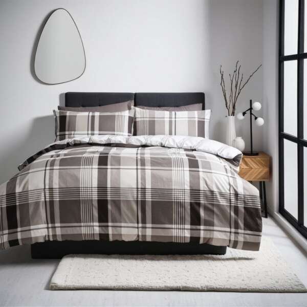 Komplet pościeli w szarą kratką