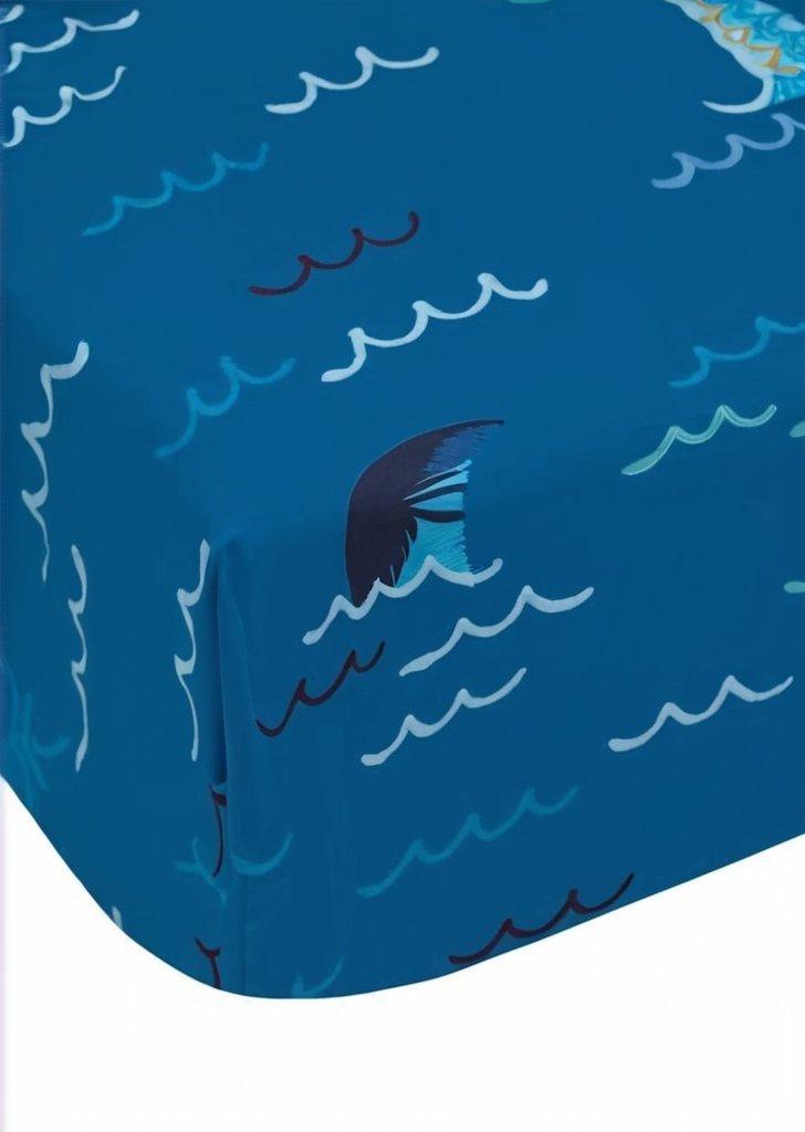 Zanurz sią w morzu przygód dziąki temu kompletowi pościeli Jawsome, przedstawiającemu zabawne rekiny pływające po ciemnoniebieskim tle. Ten żywy projekt jest idealny dla małych odkrywców oceanów, pobudzając wyobraźnią i zabawą. Wykonane z łatwego w pielągnacji poliestru pochodzącego z recyklingu i miąkkiej bawełny, przeznaczone do codziennego użytku.