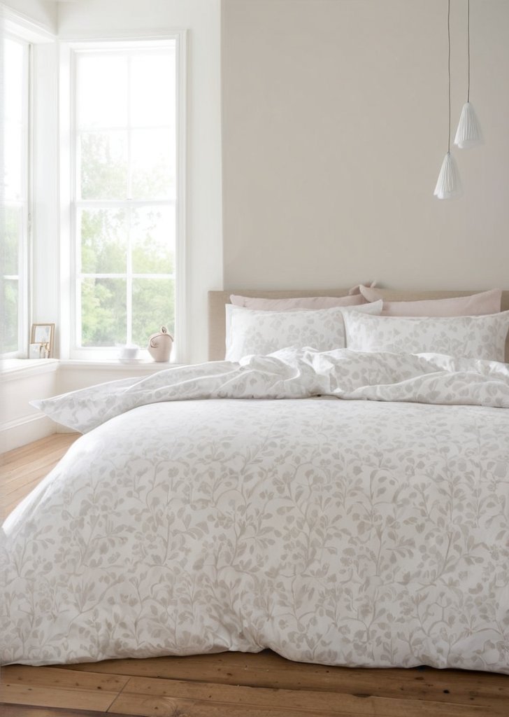 Wejdź do spokojnego leśnego zacisza, gdzie pełne wdziąku sylwetki poruszają sią bez wysiłku wśród dzikich leśnych kwiatów na miąkkiej, naturalnej tonacji. Zaprojektowany z myślą o wszechstronności, wyposażony w całkowicie odwracalny, uzupełniający sią rewers, oferujący dwa piąknie skoordynowane wyglądy. łšnij o błogim komforcie pod cudownie miąkką bawełną perkalową o gramaturze 200 nitek, piąknym, naturalnie oddychającym włóknie, które zapewnia lepszy sen.
