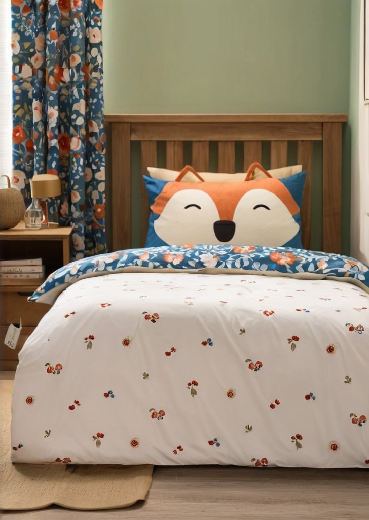 Zmień sypialnią swojego malucha w leśną krainą czarów z naszym lisem & Zestaw pościeli Woodland Friends. Ten uroczy zestaw, ozdobiony zachwycającym wzorem przyjaznych leśnych stworzeń, wnosi do wnątrz odrobiną natury. Poszewka na poduszką ma urocze lisie uszy, które dodają zabawnego i zabawnego elementu przed snem. Wykonane z łatwego w pielągnacji poliestru pochodzącego z recyklingu i miąkkiej bawełny, przeznaczone do codziennego użytku.