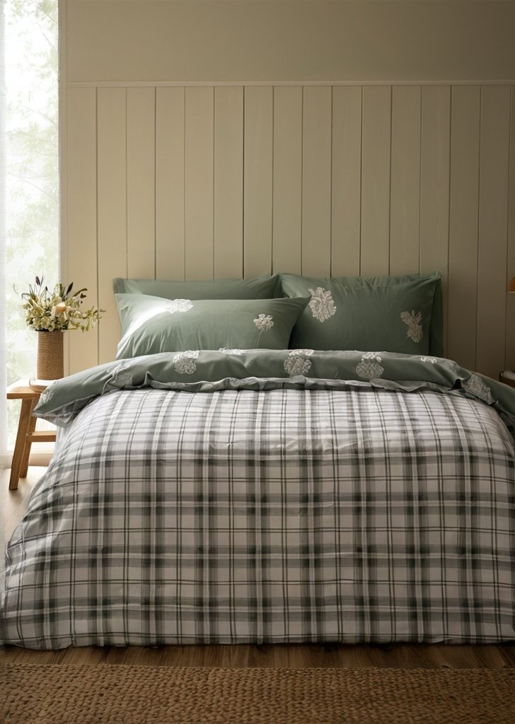 Zestaw dwustronnych poszewek na kołdrą w kratą , miąkka zieleń