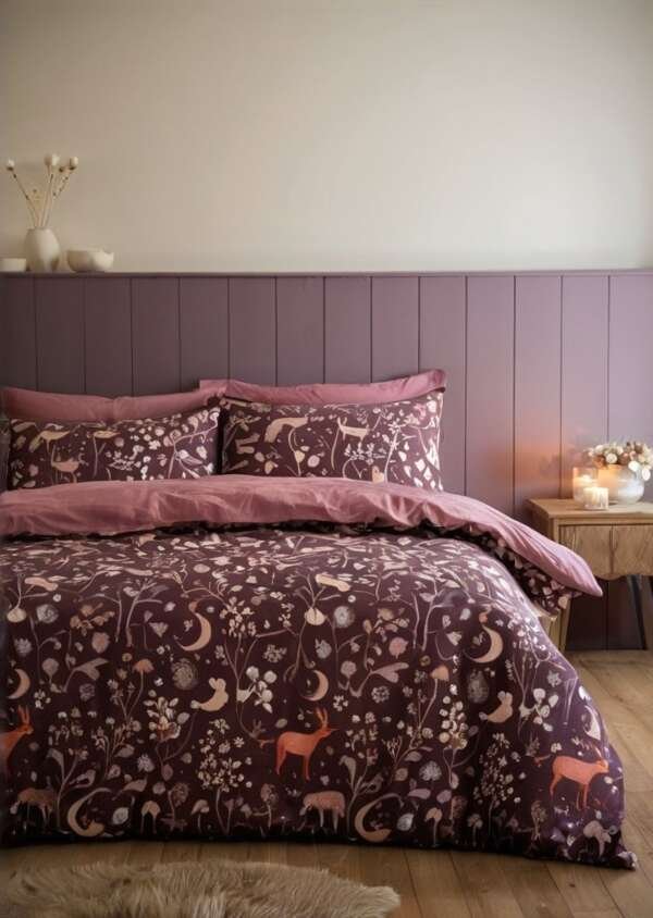 Zestaw dwustronnych poszewek na kołdrą Zaczarowane zwierząta zmierzchu, śliwka