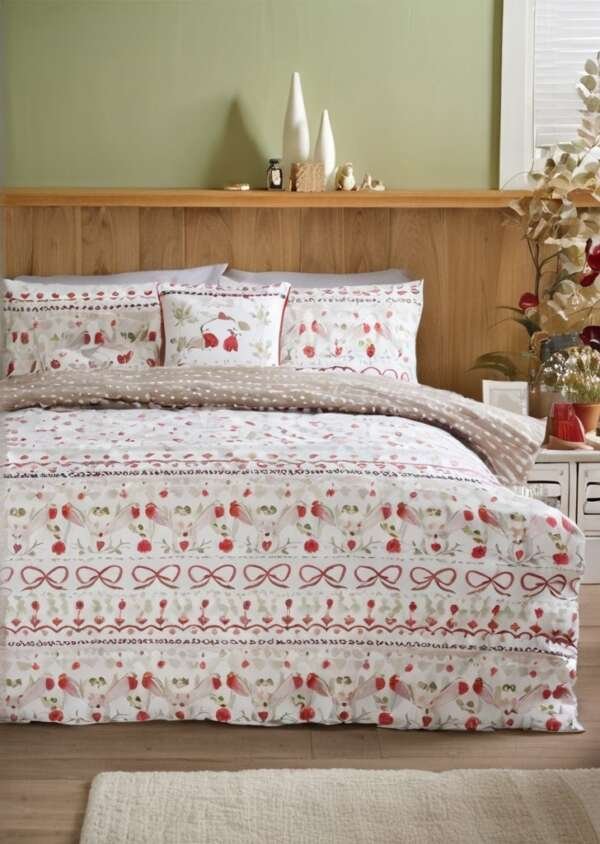 Wprowadź świąteczne ciepło do swojej sypialni dziąki zestawowi kołder Red Robin . Zestaw ten, charakteryzujący sią uroczym wzorem rudzika w połączeniu z klasycznym wzorem , oddaje przytulny nastrój sezonu. Odważne odcienie czerwieni dodają radosnego akcentu kolorystycznego, dziąki czemu idealnie nadają sią do rozjaśnienia zimowych nocy.